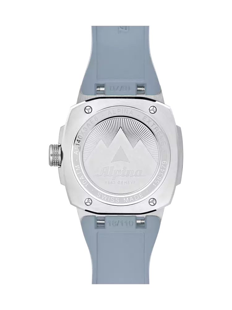 L'orologio Alpina Alpiner Collection Alpiner Extreme Solarmeter AL-140LN3AE6 si distingue per il suo design elegante e per l'eccellente qualità. Il marchio Alpina, fondato nel 1883, vanta una lunga tradizione nella produzione di orologi svizzeri di alta qualità. Ispirata dalle Alpi e dalla natura, Alpina unisce l'artigianato tradizionale con la tecnologia innovativa. La struttura dell'Alpina Alpiner Extreme Solarmeter è realizzata in robusto acciaio inossidabile e ha una forma rotonda con un diametro di 37,50 x 38,90 mm. L'orologio è resistente all'acqua fino a una profondità di 100 metri e presenta un fondo della cassaa vite per maggiore stabilità. Il cristallo di zaffiro antiriflesso protegge il quadrante opaco azzurro chiaro dell'orologio, che presenta linee distintive come indice. Il movimento solare al quarzo del calibros AL-140 garantisce una misurazione precisa del tempo ed è ecologico poiché alimentato da energia solare. La cinghia dell'Alpina Alpiner Extreme Solarmeter è realizzata in gomma resistente e ha un bellissimo colore blu. La chiusura pieghevole garantisce una presa sicura sul polso. Le funzioni dell'orologio includono un display della data, una seconda centrale, oltre a lancette luminose e indici luminosi che garantiscono una buona leggibilità anche in ambienti bui. L'Alpina Alpiner Extreme Solarmeter AL-140LN3AE6 combina un design elegante con un'elevata funzionalità, rendendolo il compagno ideale per avventurieri e appassionati di attività all'aperto.